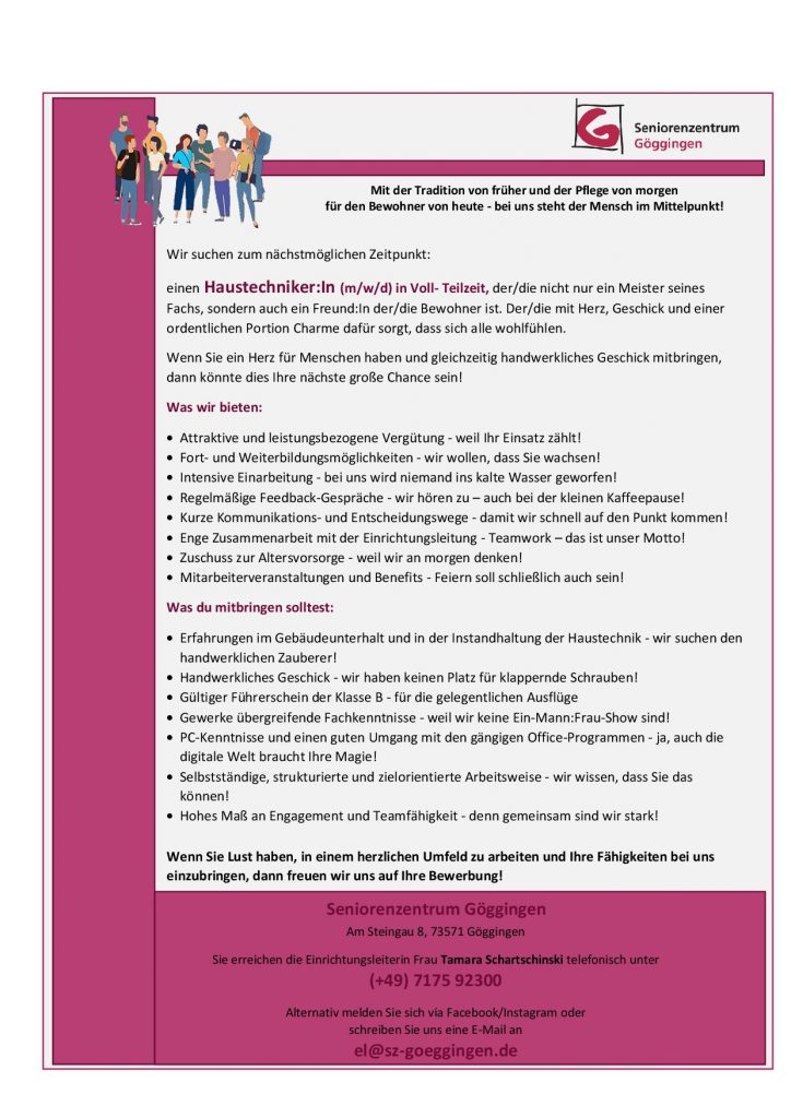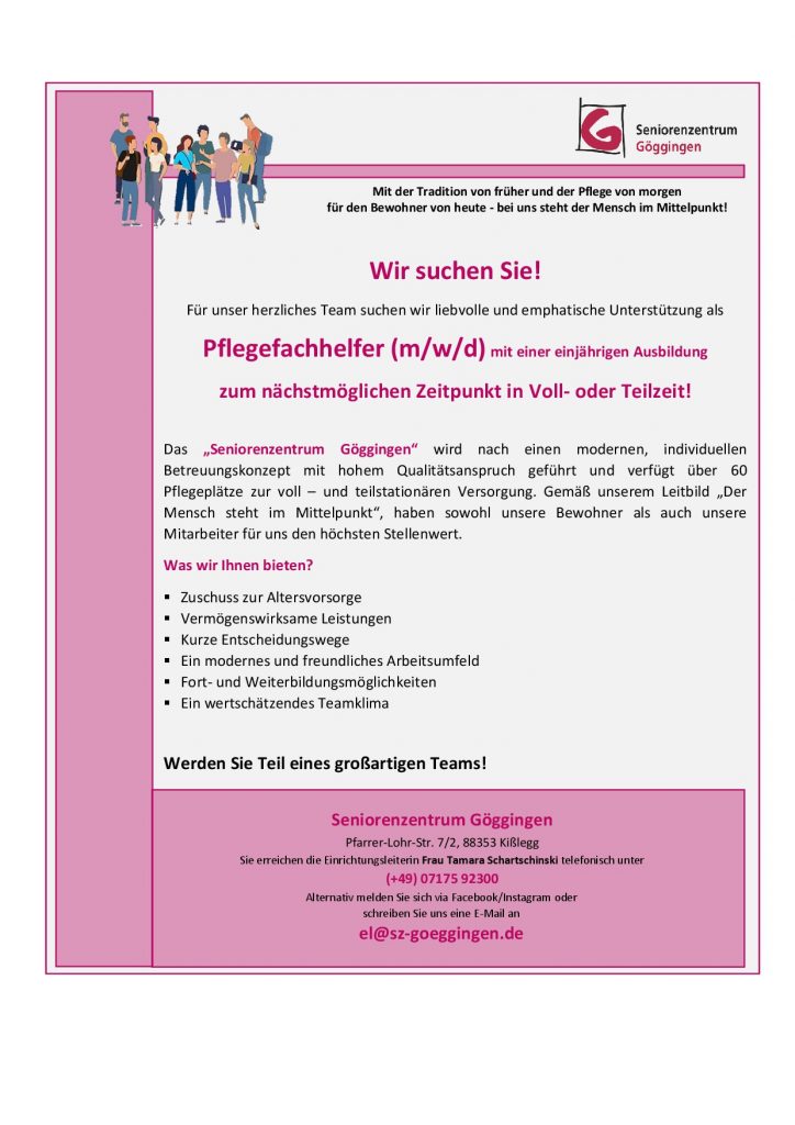 Sie sind von unserem Unternehmen überzeugt und möchten gerne in der Pflegebranche tätig sein? Dann schauen Sie sich unsere „offenen Stellen“ an und bewerben sich bei Interesse über das am Ende der Seite stehende Formular. Sollte aktuell keine passende Stelle für Sie dabei sein, können Sie uns dennoch gerne eine Initiativbewerbung zukommen lassen.